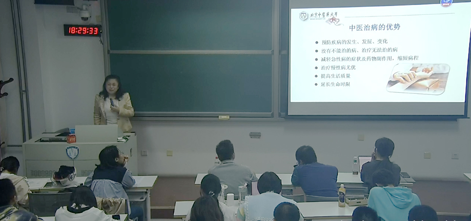 张经理的授课内容丰富、深入浅出,极具感染力,既有宏观层面对北中医国际交流合作的全景式梳理,又有微观层面对具体案例的生动讲授,既有对北中医国际交流合作历史成就的深情回顾,又有对在场学子投身中医国际交流合作的殷切勉励。同学们认真聆听,积极思考。张经理还在授课过程中与现场同学穿插进行交流互动,课堂气氛热烈活跃。