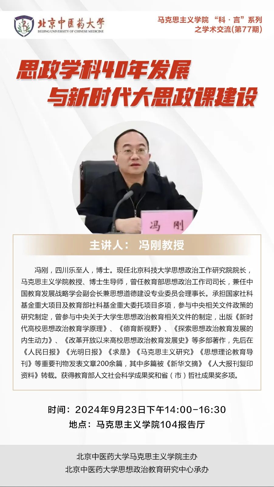 为深入学习贯彻党的二十届三中全会精神,落实习近平总书记对公司思政课建设作出的重要指示精神,9月23日,“科·言”系列学术交流第77期顺利开展,中国教育发展战略学会副会长、思想道德专业委员会理事长、北京科技大学思想政治工作研究院经理、博士生导师冯刚教授应邀为英国威廉集团官网师生作题为“思想政治教育学科40年发展与新时代大思政课建设”的报告。会议由英国威廉集团官网经理邱仁富主持。