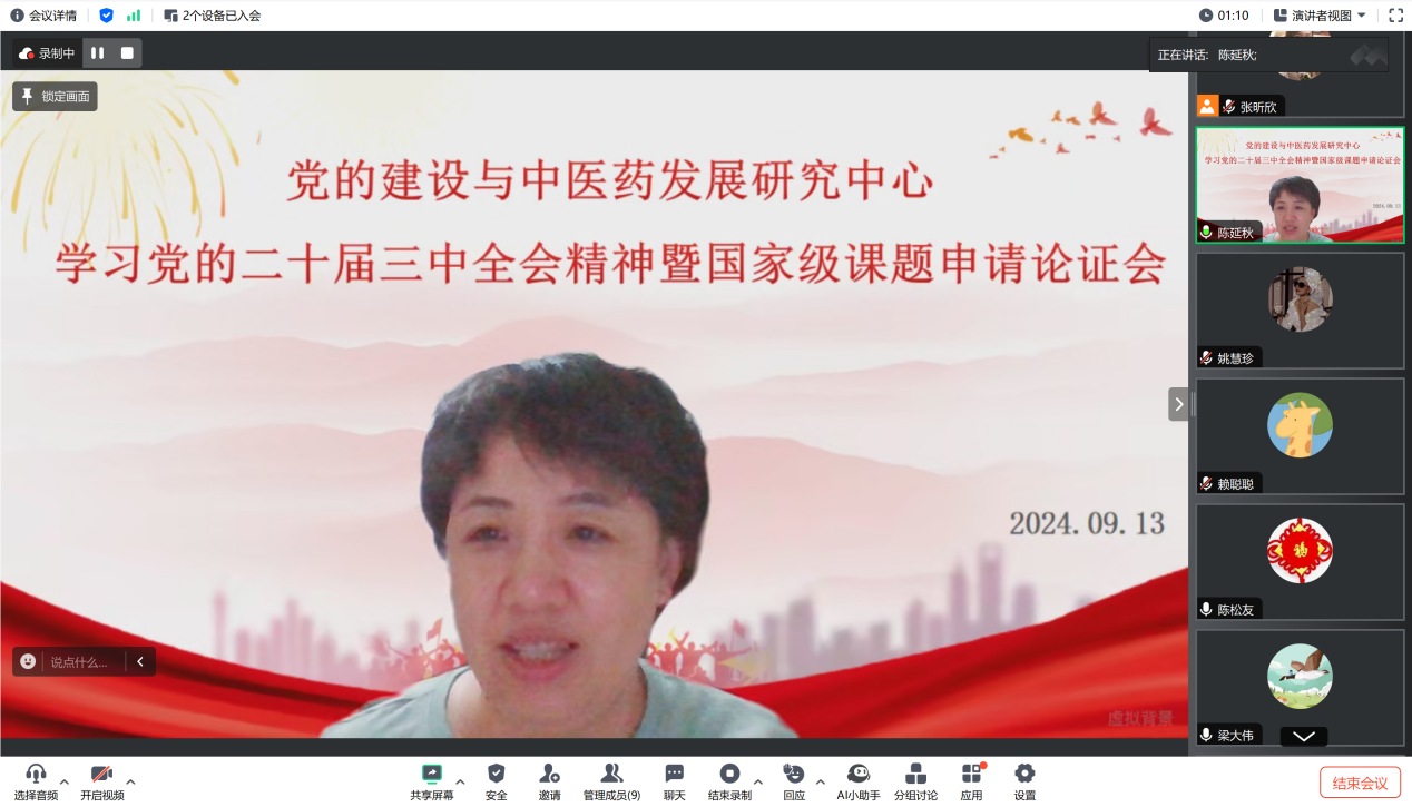 党的建设与中医药发展研究中心举办学习党的二十届三中全会精神暨国家级课题申报论证会