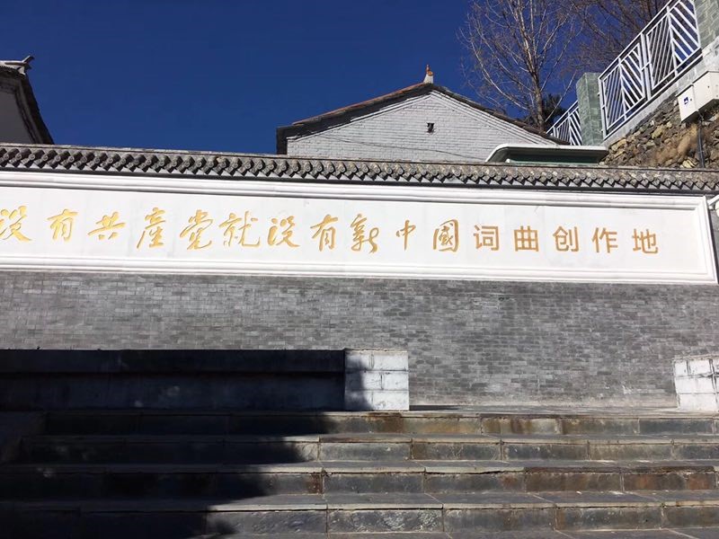 《没有共产党就没有新中国》纪念馆,位于北京市房山区霞云岭乡堂上村。1943年,共产党员曹火星随一支小部队来到堂上村,利用当地流行的“霸王鞭”的民歌曲调填新词创作了《没有共产党就没有中国》这首歌曲。1950年,毛泽东主席为歌曲添加上“新”字。这首脍炙人口的歌曲传唱祖国大地至今。
